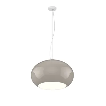 Vetro soffiato bianco latte con finitura tortora lucida.