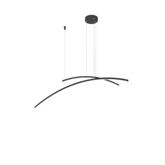 La sospensione KAWAII 1229 S è una soluzione d'illuminazione moderna e dinamica, caratterizzata da due lunghi elementi luminosi che offrono un design essenziale e scenografico, ideale per illuminare tavoli, zone conviviali, ecc