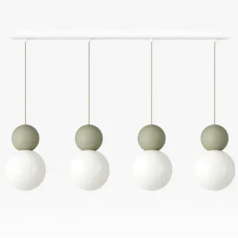 COTTAGE 1228/S4 R è una sospensione elegante e attuale, pensata per valorizzare gli ambienti contemporanei con un tocco di originalità. La lampada è composta da quattro sfere pendenti fissate a una base rettangolare in metallo bianco (80×4 cm), creando una composizione luminosa armoniosa e distintiva.