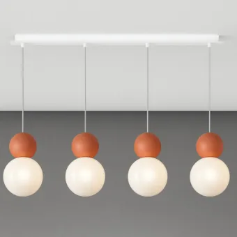 COTTAGE 1228/S4 R è una sospensione elegante e attuale, pensata per valorizzare gli ambienti contemporanei con un tocco di originalità. La lampada è composta da quattro sfere pendenti fissate a una base rettangolare in metallo bianco (80×4 cm), creando una composizione luminosa armoniosa e distintiva.