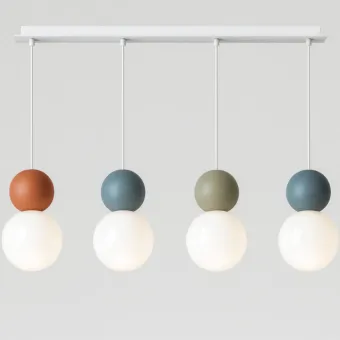 COTTAGE 1228/S4 R è una sospensione elegante e attuale, pensata per valorizzare gli ambienti contemporanei con un tocco di originalità. La lampada è composta da quattro sfere pendenti fissate a una base rettangolare in metallo bianco (80×4 cm), creando una composizione luminosa armoniosa e distintiva.