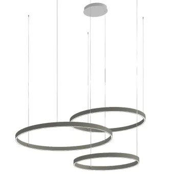Il GAME TRIS S40+S60+S80 è una sofisticata lampada a sospensione che unisce design moderno e funzionalità avanzate, composta da tre cerchi luminosi di diametro 40 cm, 60 cm e 80 cm. La sua struttura elegante e versatile si distingue per l’emissione di luce sia verso l’alto che verso il basso, creando un’illuminazione avvolgente e scenografica. Supportata da una robusta base da soffitto e decentramenti regolabili, questa lampada permette di personalizzare l’altezza fino a un massimo di 300 cm, adattandosi perfettamente a ogni ambiente.