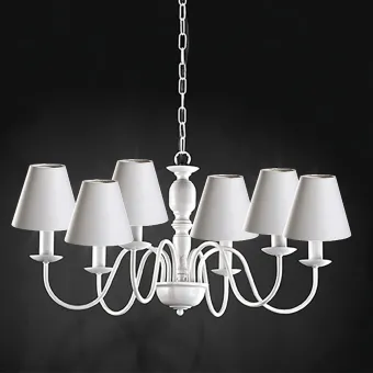 Il lampadario Ducale 6262 B ha una struttura in metallo verniciato a polvere con finitura bianco opaco.