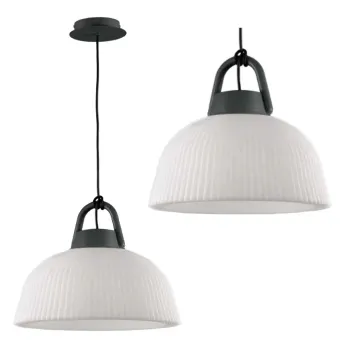 Struttura in alluminio grigio antracite. Diffusore in polietilene bianco. La sospensione è provvista di un portalampade E27 per lampadina a led.