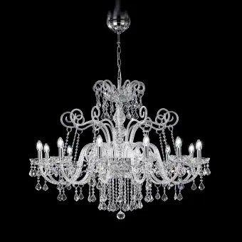 Una pioggia di luce invade l'intero lampadario e si propaga all'ambiente circostante grazie alla magia dei lustrini. Per mezzo della rifrazione, le facce delle bobeches e dei pendagli in cristallo di alta finitura, creano un vero e proprio spettro colorato dall'effetto suggestivo e onirico. La lavorazione artigianale del vetro impreziosisce la collezione per mezzo di bracci e pastorali lavorati a mano secondo la tecnica del tortiglione che ricorda l'intreccio di una corda. Il lampadario DANDOLO si adatta facilmente ad uno stile classico da collocare nel centro di una stanza dove esso diventa protagonista.