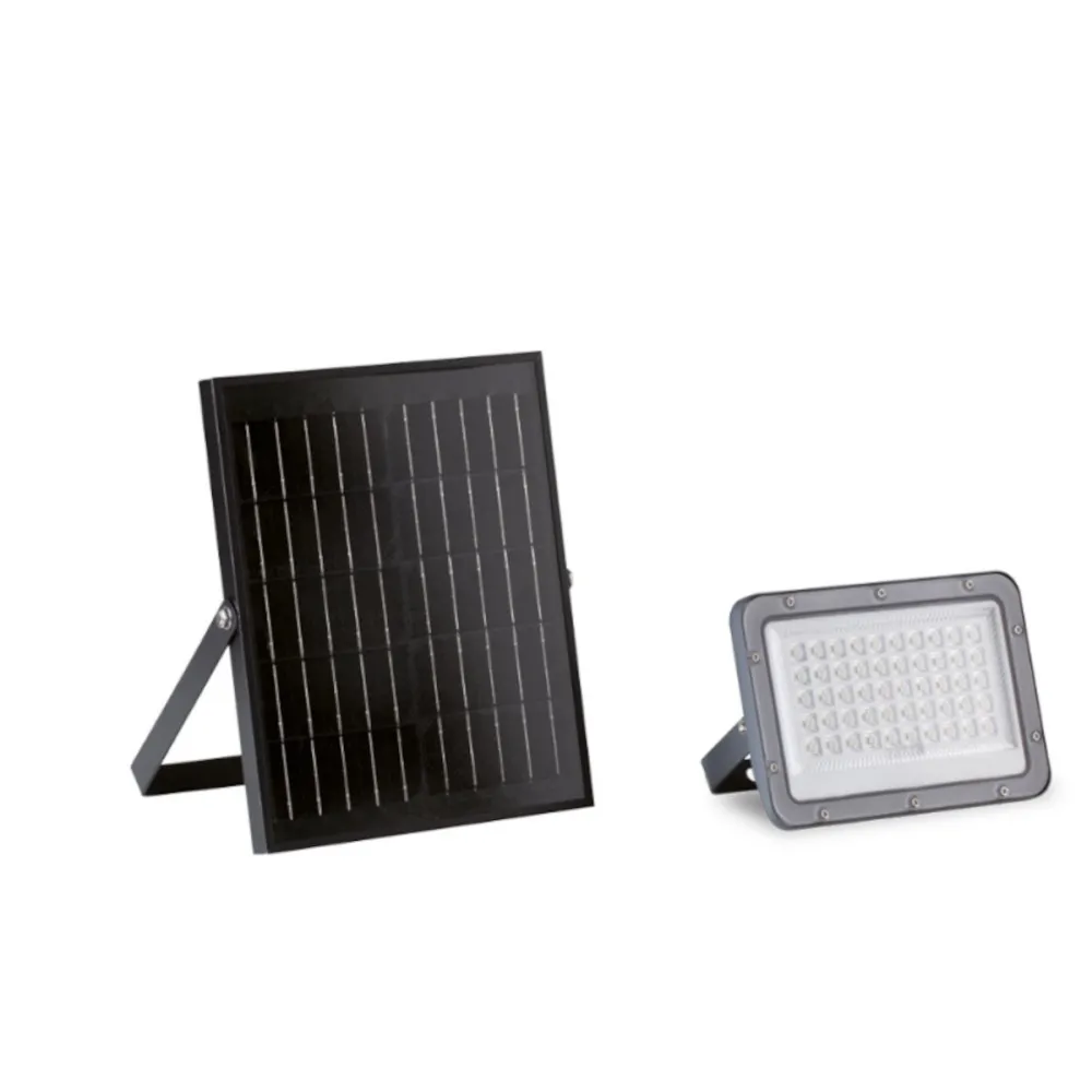 Il proiettore ad energia solare SLIM 98774 è realizzato in alluminio pressofuso e presenta un diffusore in termoplastico. completo di pannello solare policristallino remotizzabile, collegato al proiettore tramite un cavo di 270 cm. Il dispositivo include un telecomando per regolare la luminosità e le modalità di funzionamento, come l'accensione automatica al 100% al rilevamento di movimento, seguita da una riduzione al 10%, oppure l'accensione al tramonto con spegnimento all'alba, personalizzabile anche per spegnimenti dopo 3, 5 o 8 ore. Equipaggiato con una batteria ricaricabile al litio da 3,2V e 6Ah, il proiettore si ricarica in circa 4 ore e offre fino a 2 giorni di autonomia. Include un indicatore di carica e si rivela utile anche come segnalatore di intrusione.