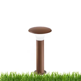 Struttura in alluminio colore ruggine. Diffusore in metacrilato opale. Il paletto è provvisto di un portalampade attacco E27 per una lampadina a led. Lampada non inclusa. Studio & Design Gea Led