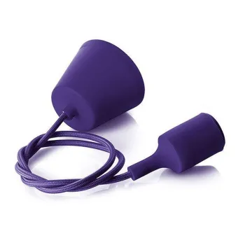 Sospensione semplice e versatile caratterizzata dalla vivacità del suo colore VIOLA, ideale per la camera dei ragazzi grazie anche alla propria struttura in gomma resistente ad urti e cadute. Lampada a sospensione con copri-portalampada in gomma con e cavo elettrico in tessuto.