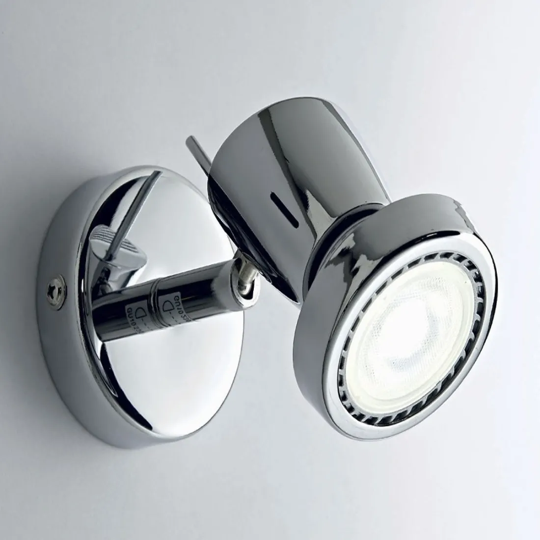 Struttura in metallo cromo lucido. Uno stile moderno con una forma semplice, una luce orientabile ideale per illuminare punti specifici di qualsiasi stanza come soggiorno, cucina, camera, corridoio, ecc... tenendo sempre conto del grado di protezione che in questo caso è IP20 cioè adatto solo ad ambienti interni con assenza di umidità.