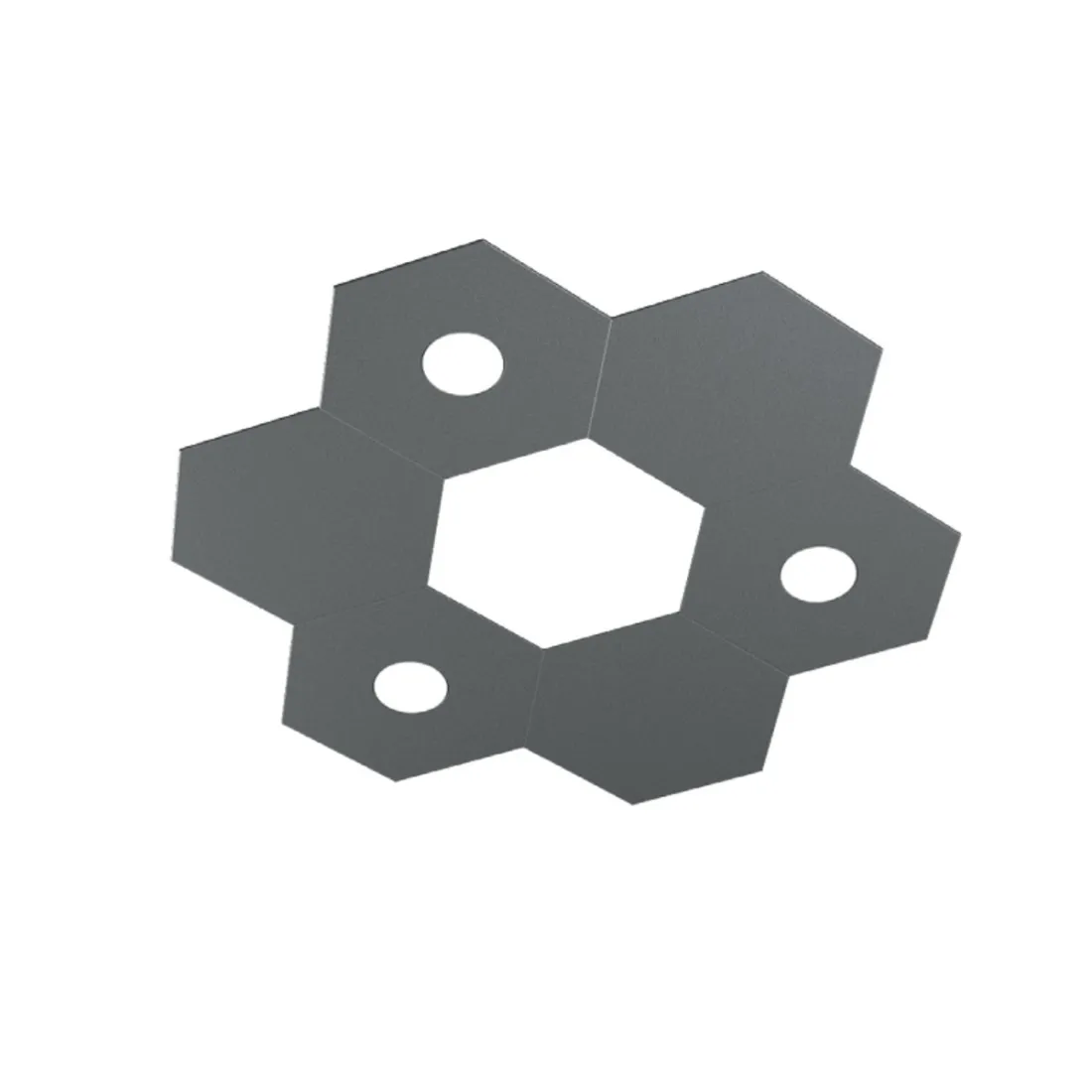 Lampada da parete o da soffitto in metallo verniciato a luce diffusa. Una plafoniera tonda, moderna di simpatica forma esagonale da installare sia a soffitto che a parete per una luce diffusa e ben distribuita. Elementi luce + elementi decorativi che possono essere disposti a proprio piacere. Un prodotto Made in Italy.
