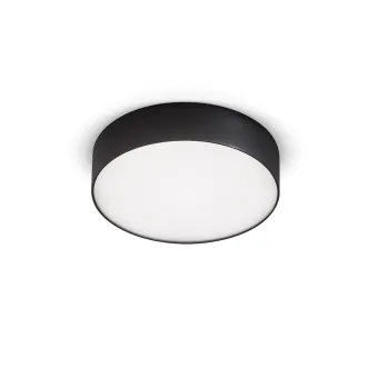 Plafoniera con struttura in alluminio. Finitura in nero opaco. Diffusore in metacrilato. Modulo LED e trasformatore inclusi.