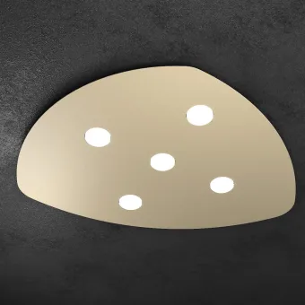 Plafoniera moderna dalla forma triangolare in metallo verniciato bianco, grigio o sabbia. Una lampada da soffitto a luce diffusa da collocare in ingressi, corridoi, soggiorni, camere, cucine ... per un'illuminazione essenziale ma diffusa. Un prodotto Made in Italy.
