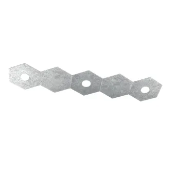 Collezione di lampade esagonali formate da lastre di metallo verniciato in diverse finiture, BIANCO, GRIGIO, SABBIA, MARRONE, GRIGIO, ANTRACITE, FOGLIA ARGENTO, FOGLIA ORO o FOGLIA RAME. La plafoniera monta tre portalampade attacco GX53 per una lampadina a led da max 9W esclusa.
