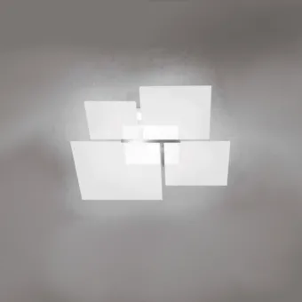 Plafoniera moderna composta da vetri satinati quadrati, di dimensioni diverse, che nel loro insieme danno vita ad un disegno geometrico da adattare sicuramente ad un arredamento più attuale. Un modello curato ai minimi termini e che fa la sua figura in qualunque stanza si posizioni. Made in Italy