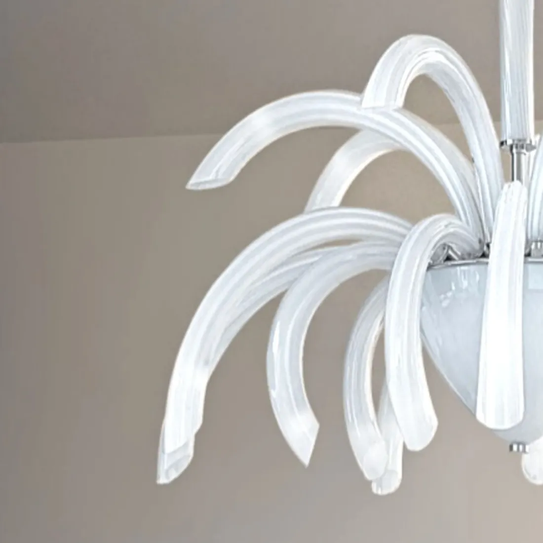 Plafoniera realizzata da vetrai artisti di Murano, una forma originale che si fa notare in ogni sua collocazione, sia in ambienti moderni che classici. Esuberanza nelle forme e funzionalità creano un punto luce unico per caratteristiche e design. Made in Italy.