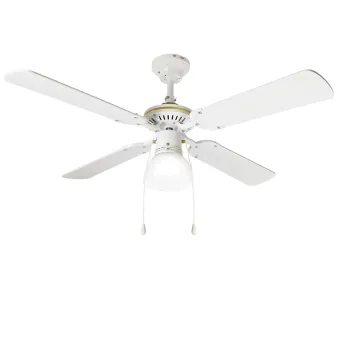 Ventilatore classico o tendente ad uno stile moderno di semplice ed essenziale design. Un ventilatore da soffitto che ricircola l'aria, arreda e illumina. Un ventilatore da soffitto che illumina uniformemente qualsiasi stanza e per qualsiasi uso. Un ventilatore da installare nel soggiorno, mansarde, in cucina o in camera matrimoniale.